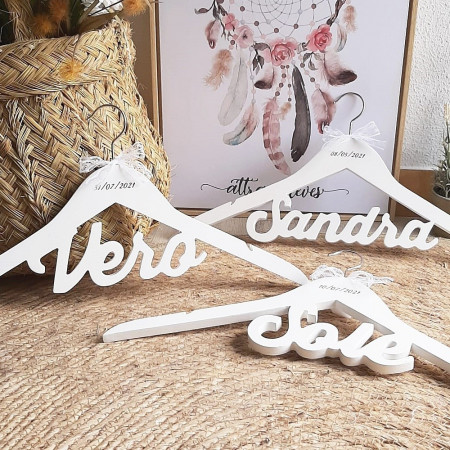 Percha de madera personalizada, para que tu traje y tú brilléis con luz propia en ese día tan especial. Perfectas para regalar y sorprender. Cada una es una pieza única, de calidad, fabricada en madera y hecha de forma artesanal exclusivamente para ti.