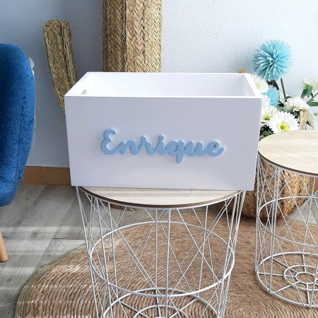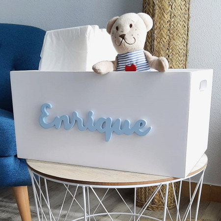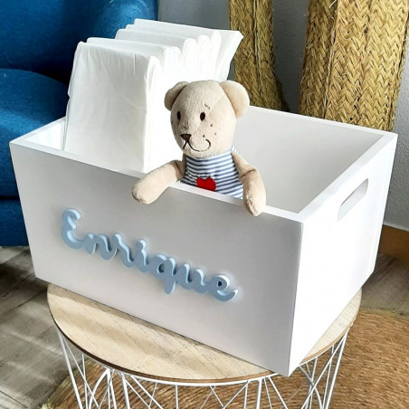 Caja personalizada perfecta para usar como almacenaje, para pañales, toallitas y todas las cosas que necesitamos tener bien a mano cuando tenemos un bebé en casa. Además es genial para montar una cesta de regalo si tienes que visitar a un recién nacido o estás pensando en el detalle ideal para regalar en un bautizo o fiesta de bienvenida del bebé.