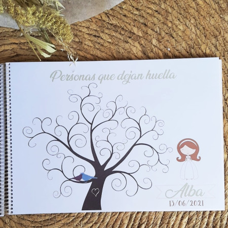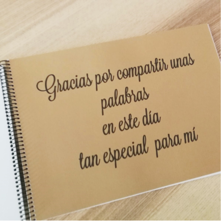 Te editamos tu libro de firmas ¡A medida! Puedes decidir desde el tamaño, hasta la portada donde podrás incluir una foto, diseño o frase que más te que te guste. También editamos el interior y el número de páginas, pudiendo elegir si lo prefieres solo para firmas o dividirlo en apartados para firmas, fotos, momentos especiales... ¡Tú decides! Solo tienes que ponerte en contacto con nosotros.